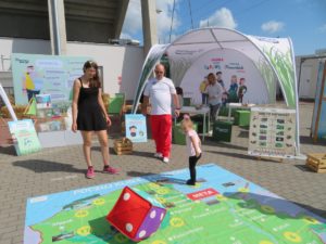 Rodzina Pomorskich wędruje po województwie nie tylko z wystawą. Od kilku tygodni bierze udział także w różnych piknikach, festynach i wydarzeniach. Wspólnie z Pomorskimi można zagrać w wielkoformatową grę planszową na temat bioróżnorodności, układać puzzle, rozwiązywać rebusy i zagrać w koło fortuny oraz edukacyjne gry karciane na temat podstawowych zasad gospodarki odpadami.
